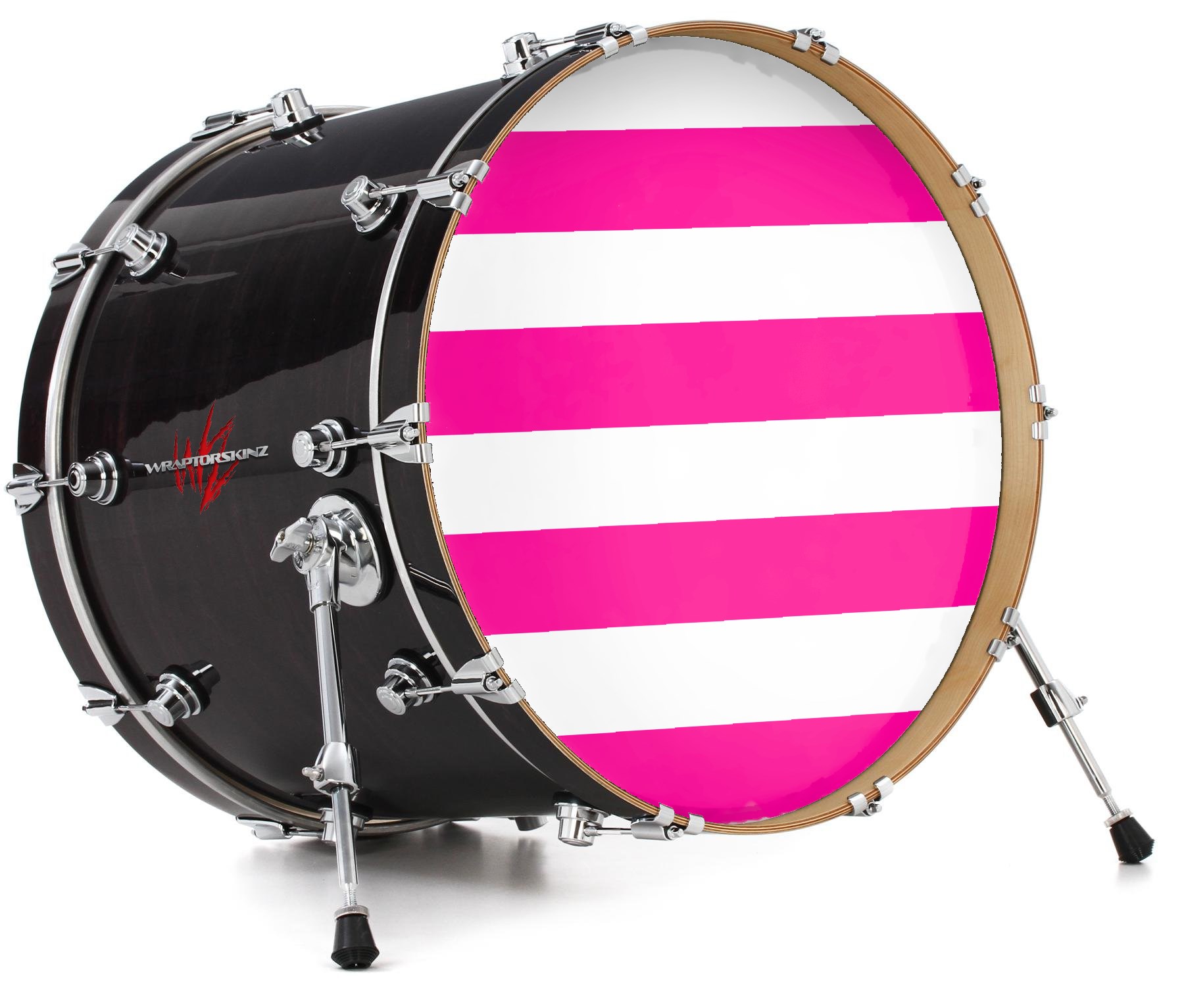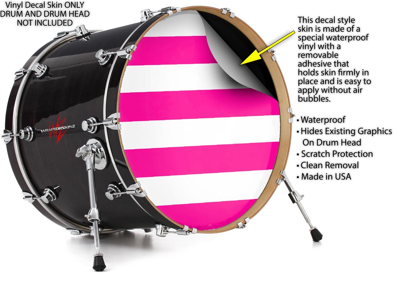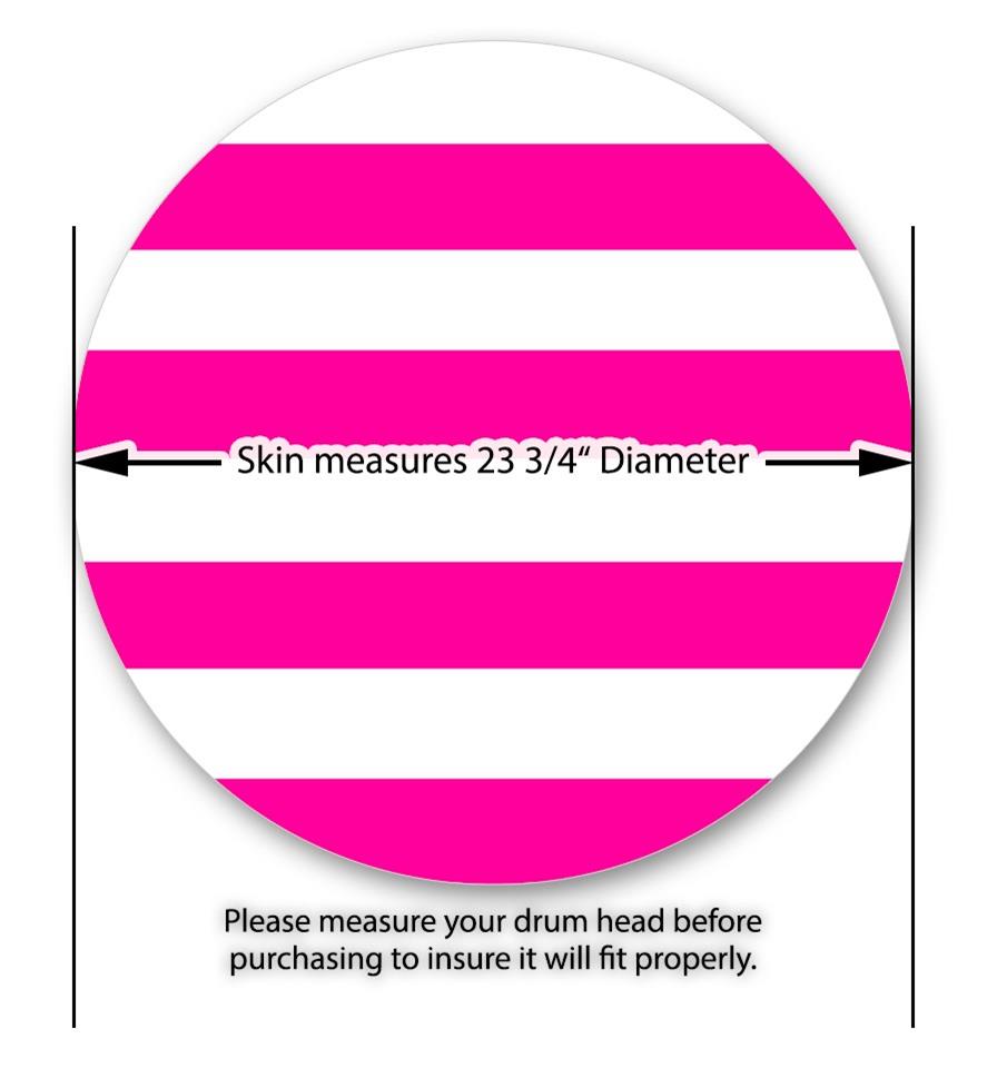 Decal Skin works with most 24" Bass Kick Drum Heads Psycho Stripes Hot Pink and White - DRUM HEAD NOT INCLUDED