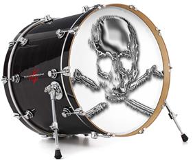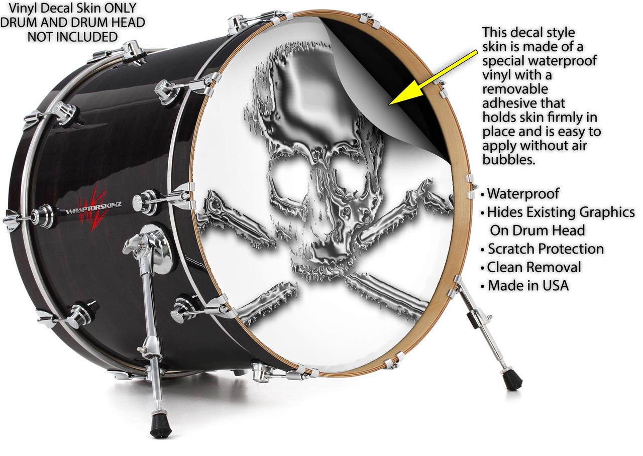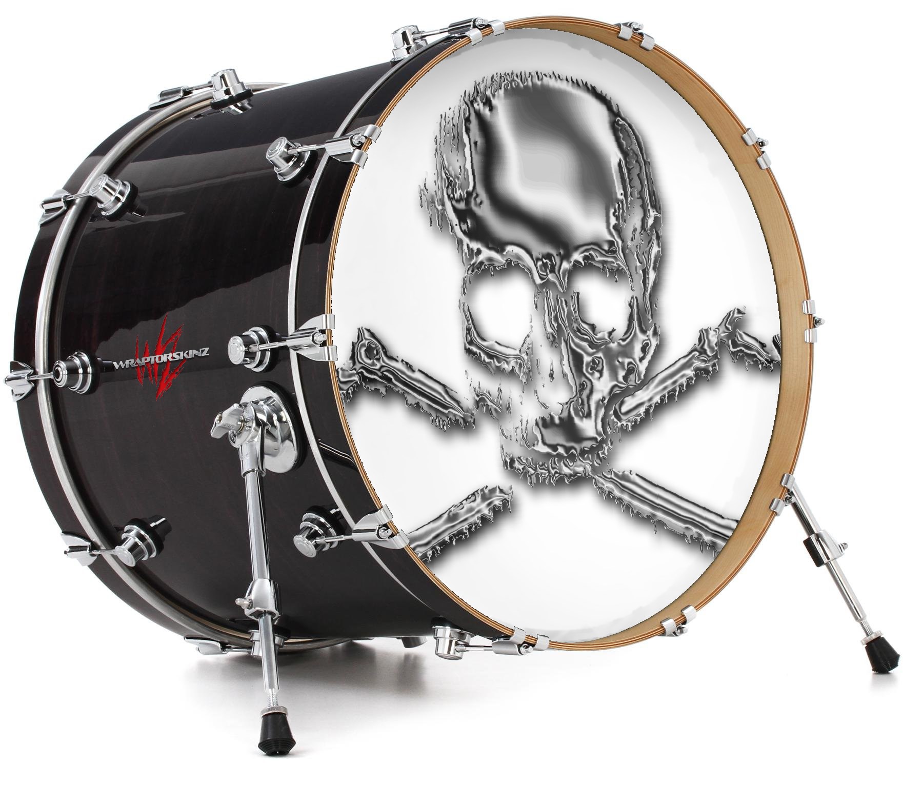 Decal Skin works with most 26" Bass Kick Drum Heads Chrome Skull on White - DRUM HEAD NOT INCLUDED
