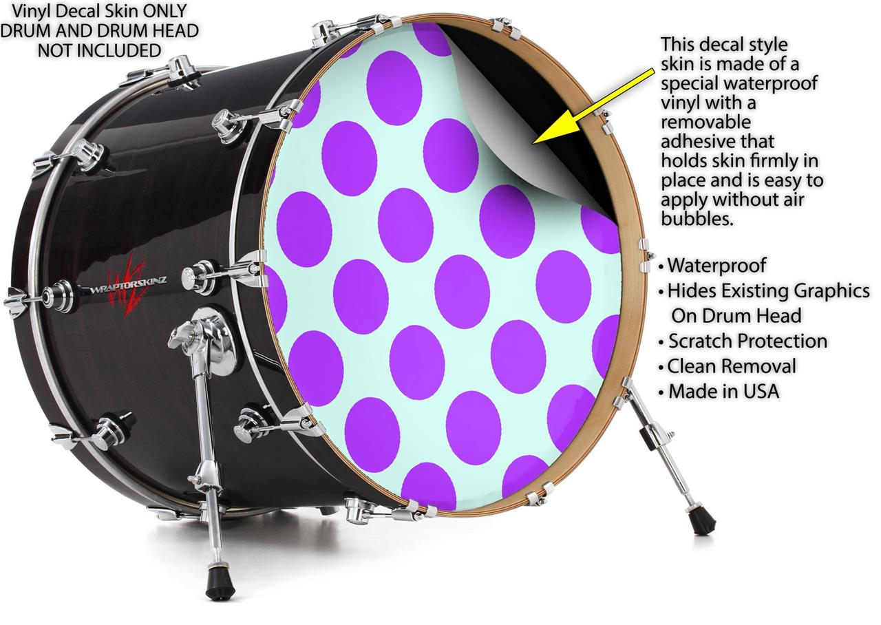 Decal Skin works with most 26" Bass Kick Drum Heads Kearas Polka Dots Purple And Blue - DRUM HEAD NOT INCLUDED