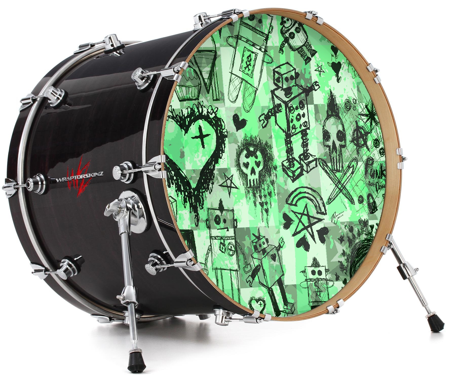 Decal Skin works with most 26" Bass Kick Drum Heads Scene Kid Sketches Green - DRUM HEAD NOT INCLUDED