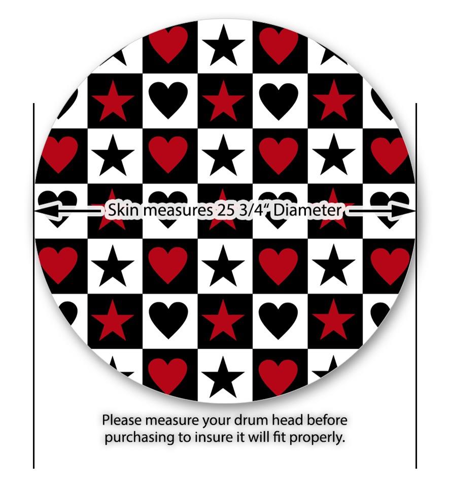 Decal Skin works with most 26" Bass Kick Drum Heads Hearts and Stars Red - DRUM HEAD NOT INCLUDED