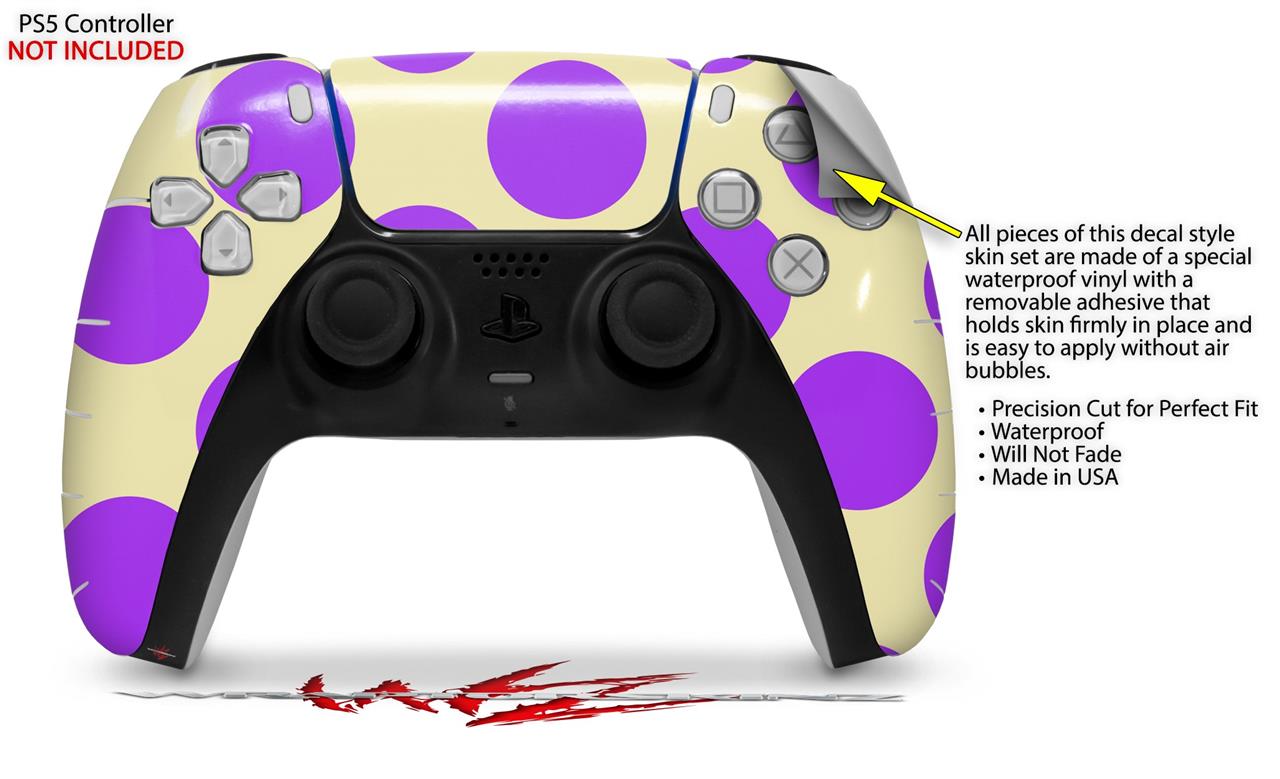 WraptorSkinz Skin Wrap compatible with the Sony PS5 DualSense Controller Kearas Polka Dots Purple On Cream (CONTROLLER NOT INCLUDED)