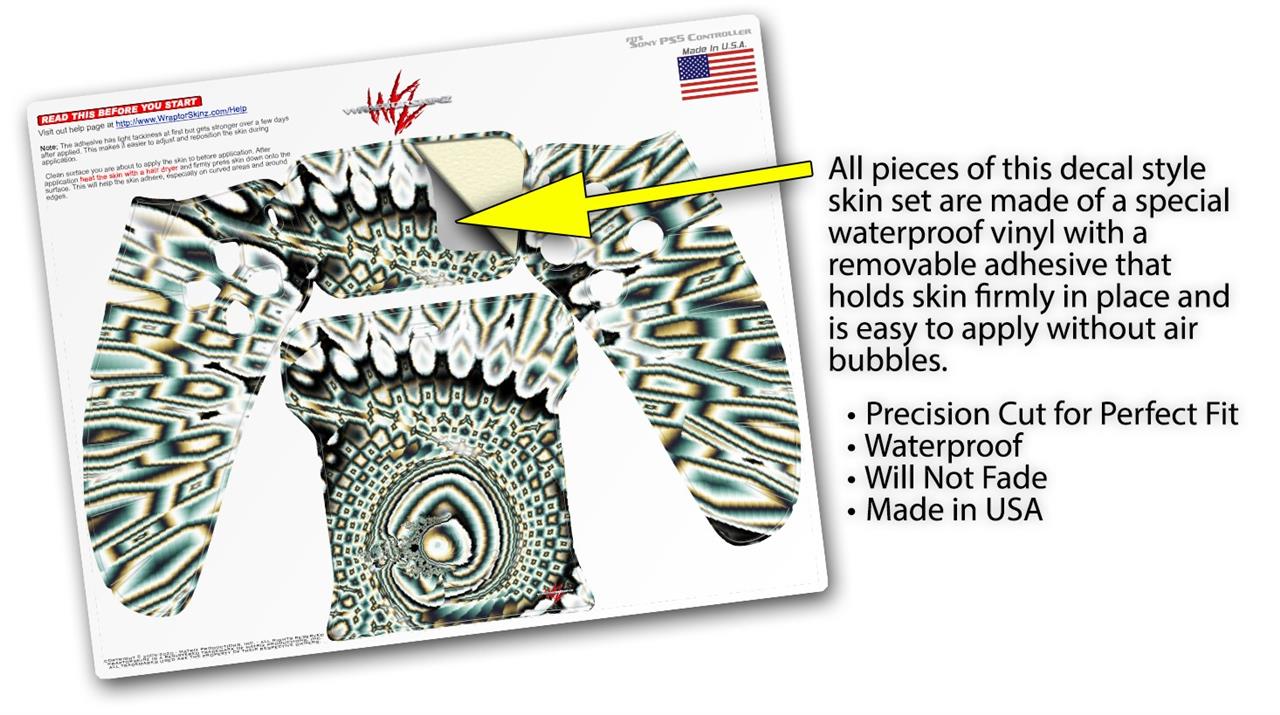 WraptorSkinz® skin wraps for the Sony Playstation 5 controller are printed using superb photo quality designs and vibrant colors printed with special fade resistant inks that last even in direct sun for years. WraptorSkinz are a composite of two layers of commercial grade materials. The bottom layer is a soft, flexible vinyl with a special removable adhesive that is easily positioned, applied without air bubbles. Next we print the bottom layer with UV protected, fade resistant inks that deliver superb photo quality designs in vibrant colors. Last, we bond a professional grade laminate over the entire skin adding a glossy protective finish. This product is not affiliated with or endorsed by Sony or the Playstation brand.