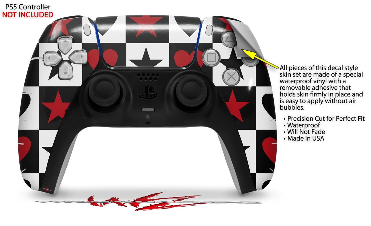 WraptorSkinz Skin Wrap compatible with the Sony PS5 DualSense Controller Hearts and Stars Red (CONTROLLER NOT INCLUDED)