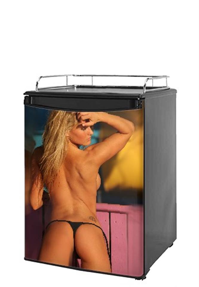 Kegerator Skin - Kasie Rae Black Bikini Back (fits medium sized dorm fridge and kegerators)