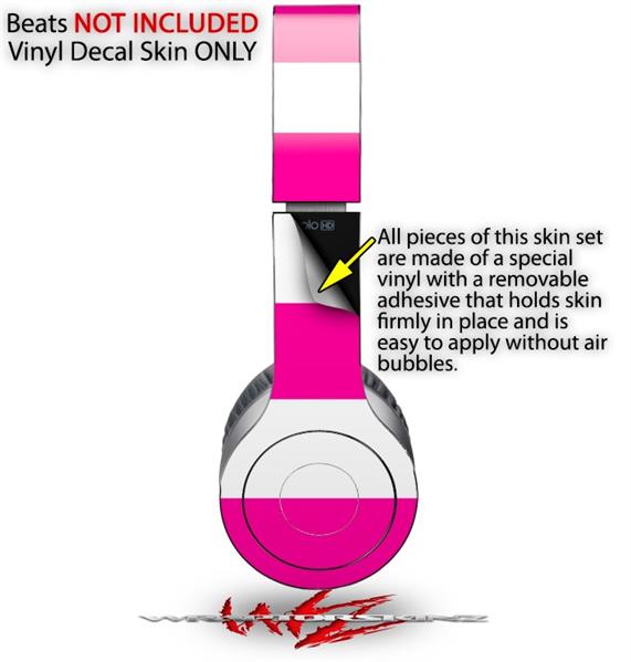 WraptorSkinz Skin Decal Wrap compatible with Beats Solo HD (Original) Psycho Stripes Hot Pink and White (HEADPHONES NOT INCLUDED)