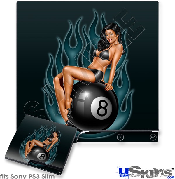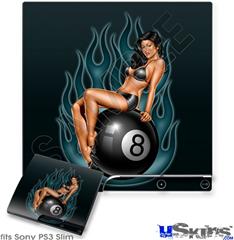 Decal Skin compatible with Sony PS3 Slim Eight Ball Pin Up Girl