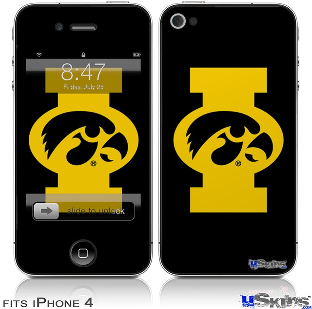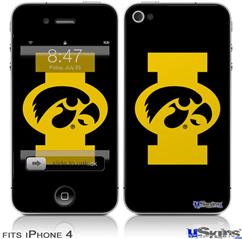 iPhone 4 Decal Style Vinyl Skin - Iowa Hawkeyes Tigerhawk Oval 02 Gold on Black (DOES NOT fit newer iPhone 4S)