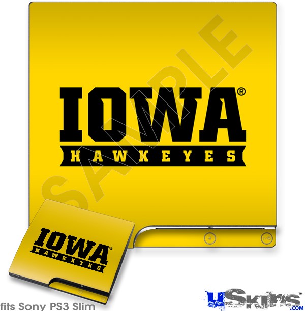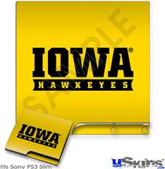 Decal Skin compatible with Sony PS3 Slim Iowa Hawkeyes 03 Gold on Black