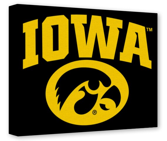 Gallery Wrapped 11x14x1.5 Canvas Art - Iowa Hawkeyes Tigerhawk Oval 01 Gold on Black