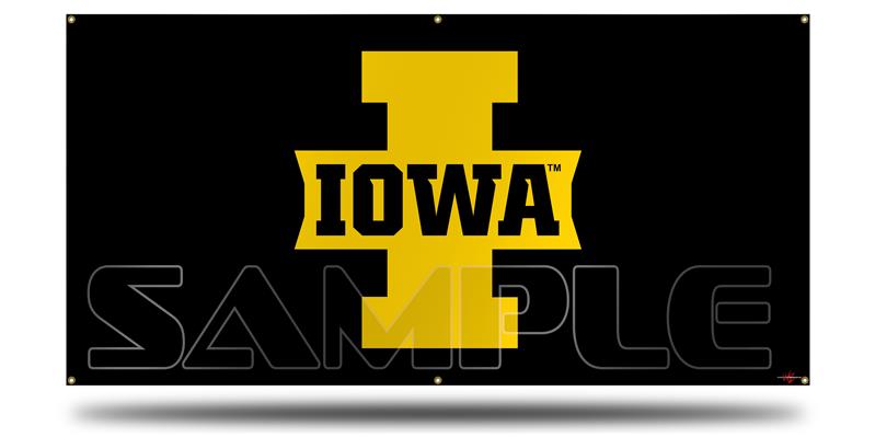 Iowa Hawkeyes 04 Gold on Black Garage Decor Shop Banner 36"x72"