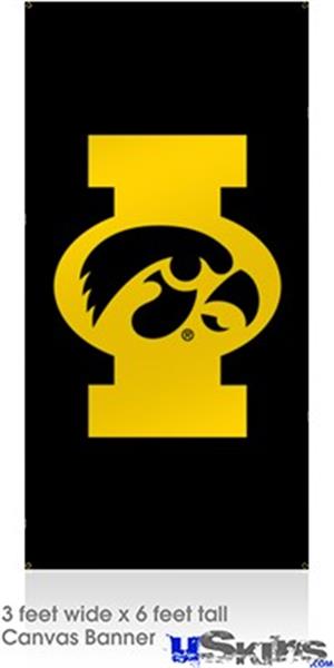 Iowa Hawkeyes Tigerhawk Oval 02 Gold on Black Garage Decor Shop Banner 36"x72"