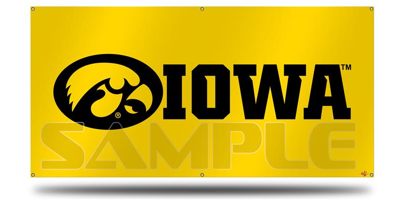 Iowa Hawkeyes Tigerhawk Oval 03 Black on Gold Horizontal Garage Decor Shop Banner 36"x72"