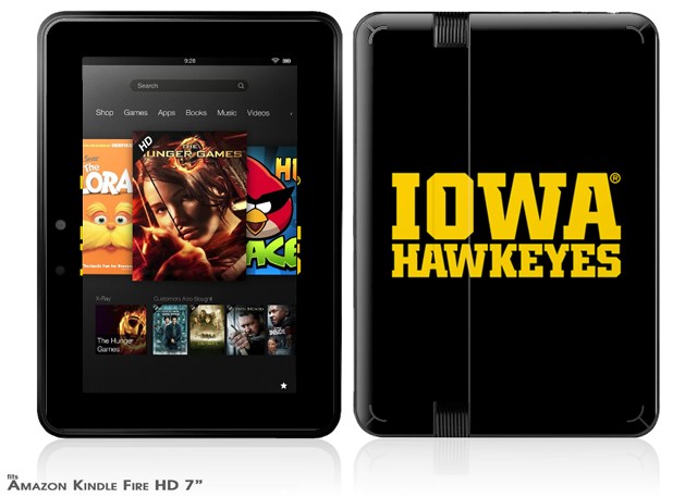 Iowa Hawkeyes 01 Gold on Black Decal Style Skin fits 2012 Amazon Kindle Fire HD 7 inch
