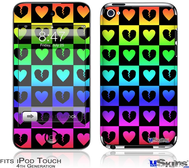 iPod Touch 4G Decal Style Vinyl Skin - Love Heart Checkers Rainbow