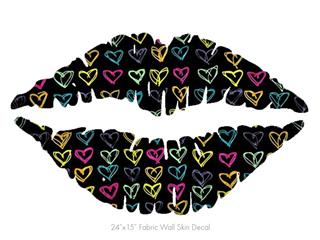 Kearas Hearts Black - Kissing Lips Fabric Wall Skin Decal measures 24x15 inches