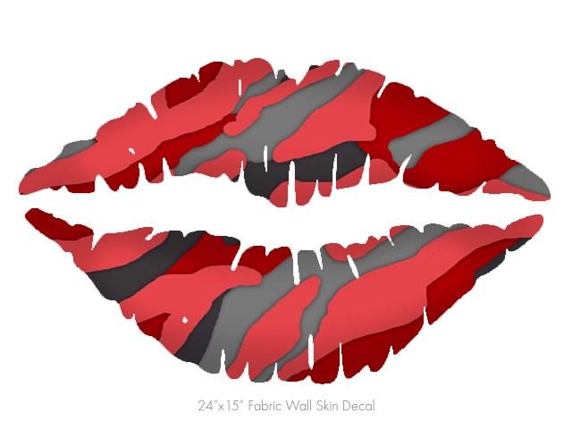 Camouflage Red - Kissing Lips Fabric Wall Skin Decal measures 24x15 inches