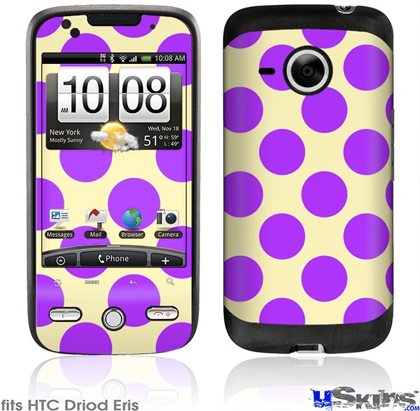 HTC Droid Eris Skin - Kearas Polka Dots Purple On Cream