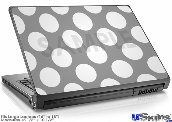 Laptop Skin (Large) - Kearas Polka Dots Whtie On Gray