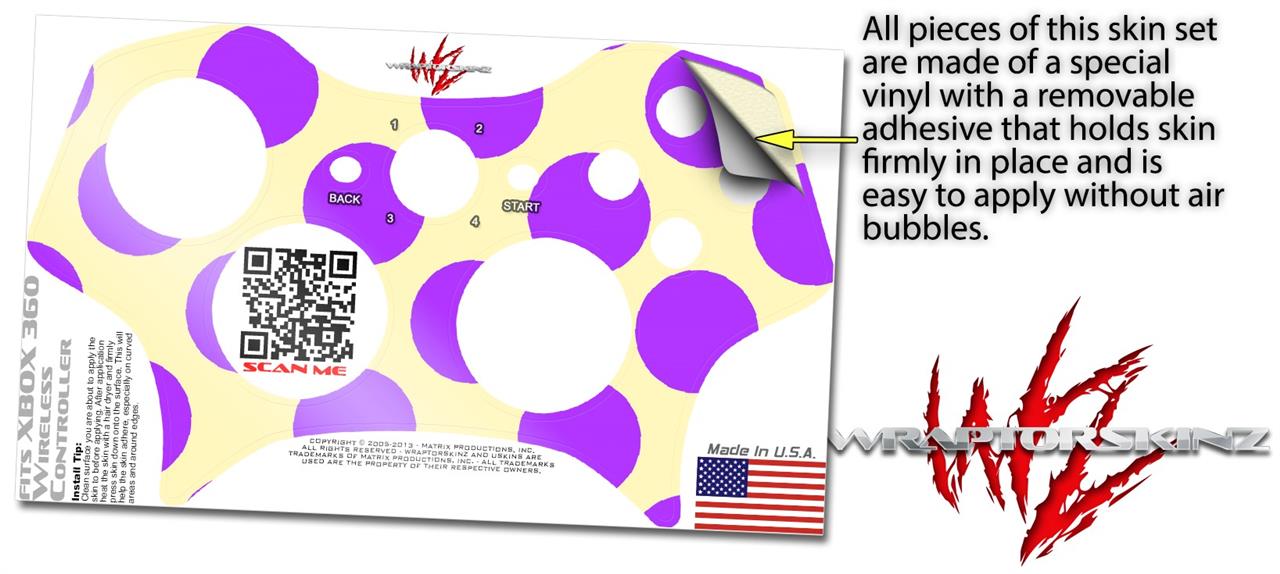 XBOX 360 Wireless Controller Decal Style Skin - Kearas Polka Dots Purple On Cream (CONTROLLER NOT INCLUDED)