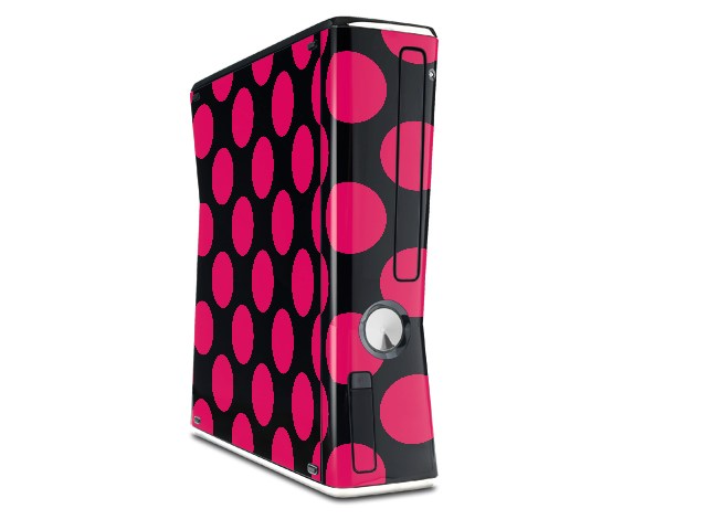 Kearas Polka Dots Pink On Black Decal Style Skin for XBOX 360 Slim Vertical