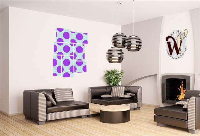 Kearas Polka Dots Purple And Blue - 7 Piece Fabric Peel and Stick Wall Skin Art (50x38 inches)