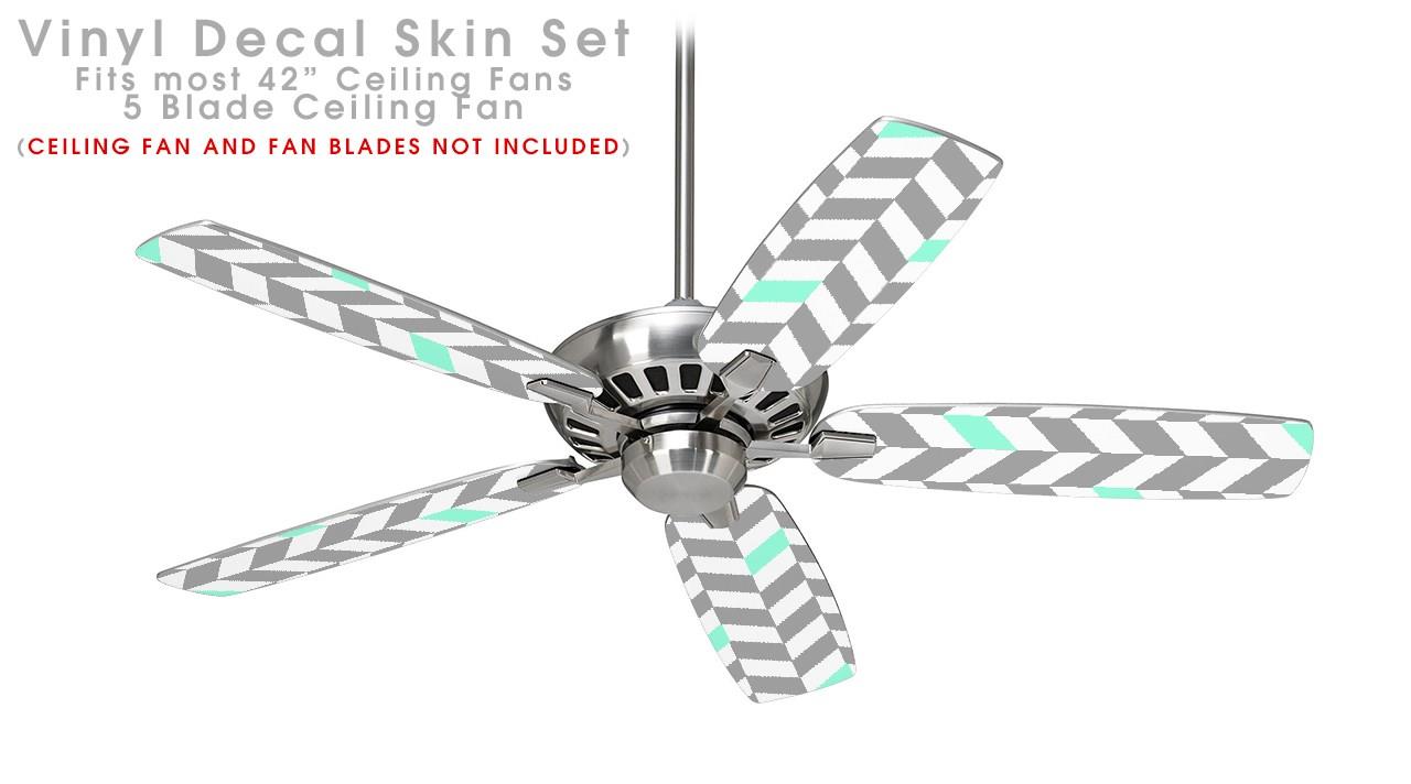 Chevrons Gray And Seafoam - Ceiling Fan Skin Kit fits most 42 inch fans (FAN and BLADES SOLD SEPARATELY)
