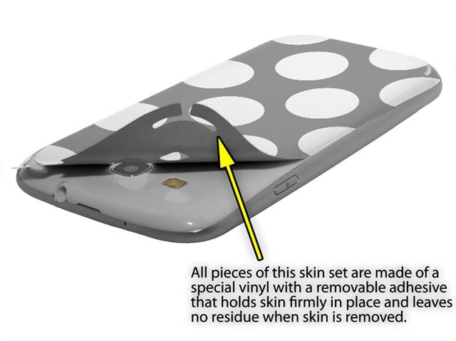 • Decal style vinyl skin covers front and back of Samsung Galaxy S III S3 phone.