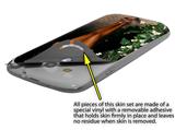 uSkins™ are self adhering vinyl skins that help prevent scratches and look great doing it. Unlike bulky silicon, plastic or metal cases and faceplates, uSkins are designed to be thin and very tough. uSkins are a composite of two layers of commercial grade materials. The bottom layer is a soft, flexible vinyl with a special removable adhesive that is easily positioned, applied without air bubbles, and effortlessly removed without leaving a sticky residue. Next we print the bottom layer with UV protected, fade resistant inks that deliver superb photo quality designs in vibrant colors. Finally we bond a professional grade laminate over the entire skin adding a glossy protective finish.