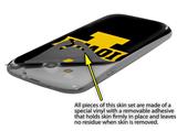 uSkins™ are self adhering vinyl skins that help prevent scratches and look great doing it. Unlike bulky silicon, plastic or metal cases and faceplates, uSkins are designed to be thin and very tough. uSkins are a composite of two layers of commercial grade materials. The bottom layer is a soft, flexible vinyl with a special removable adhesive that is easily positioned, applied without air bubbles, and effortlessly removed without leaving a sticky residue. Next we print the bottom layer with UV protected, fade resistant inks that deliver superb photo quality designs in vibrant colors. Finally we bond a professional grade laminate over the entire skin adding a glossy protective finish.
