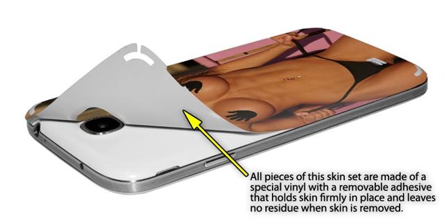• Decal style vinyl skin covers front and back of Samsung Galaxy S4 phone.