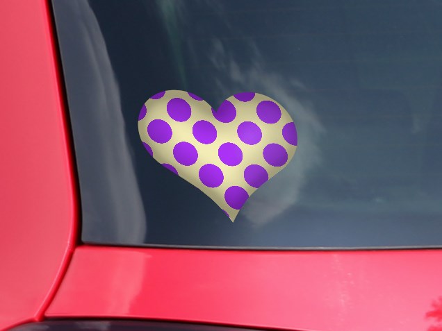 Kearas Polka Dots Purple On Cream - I Heart Love Car Window Decal 6.5 x 5.5 inches