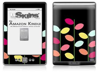 Plain Leaves On Black - Decal Style Skin (fits 4th Gen Kindle with 6inch display and no keyboard)
