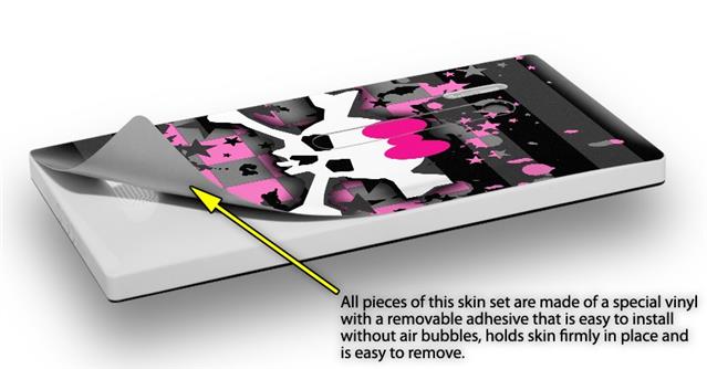 uSkins™ are self adhering vinyl skins that help prevent scratches and look great doing it. Unlike bulky silicon, plastic or metal cases and faceplates, uSkins are designed to be thin and very tough. uSkins are a composite of two layers of commercial grade materials. The bottom layer is a soft, flexible vinyl with a special removable adhesive that is easily positioned, applied without air bubbles, and effortlessly removed without leaving a sticky residue. Next we print the bottom layer with UV protected, fade resistant inks that deliver superb photo quality designs in vibrant colors. Finally we bond a professional grade laminate over the entire skin adding a glossy protective finish.