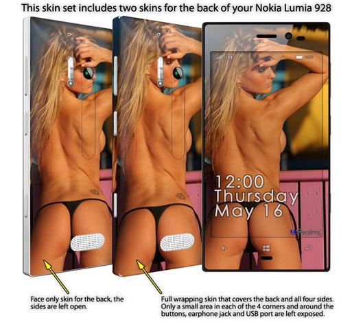 • Decal style vinyl skin covers front, back and side of Nokia Lumia 928 phone.