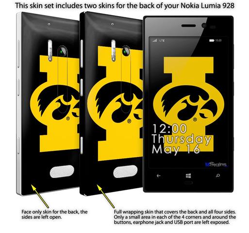 Iowa Hawkeyes Tigerhawk Oval 02 Gold on Black - Decal Style Skin (fits Nokia Lumia 928)