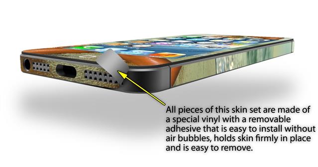 uSkins™ are self adhering vinyl skins that help prevent scratches and look great doing it. Unlike bulky silicon, plastic or metal cases and faceplates, uSkins are designed to be thin and very tough. uSkins are a composite of two layers of commercial grade materials. The bottom layer is a soft, flexible vinyl with a special removable adhesive that is easily positioned, applied without air bubbles, and effortlessly removed without leaving a sticky residue. Next we print the bottom layer with UV protected, fade resistant inks that deliver superb photo quality designs in vibrant colors. Finally we bond a professional grade laminate over the entire skin adding a glossy protective finish.