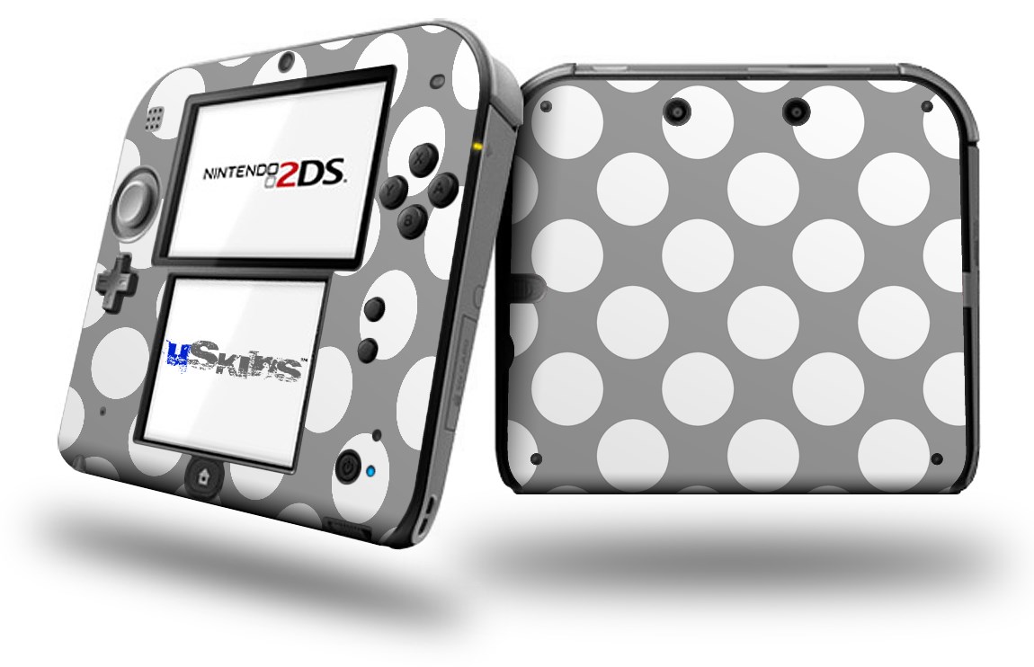 Kearas Polka Dots Whtie On Gray - Decal Style Vinyl Skin fits Nintendo 2DS - 2DS NOT INCLUDED