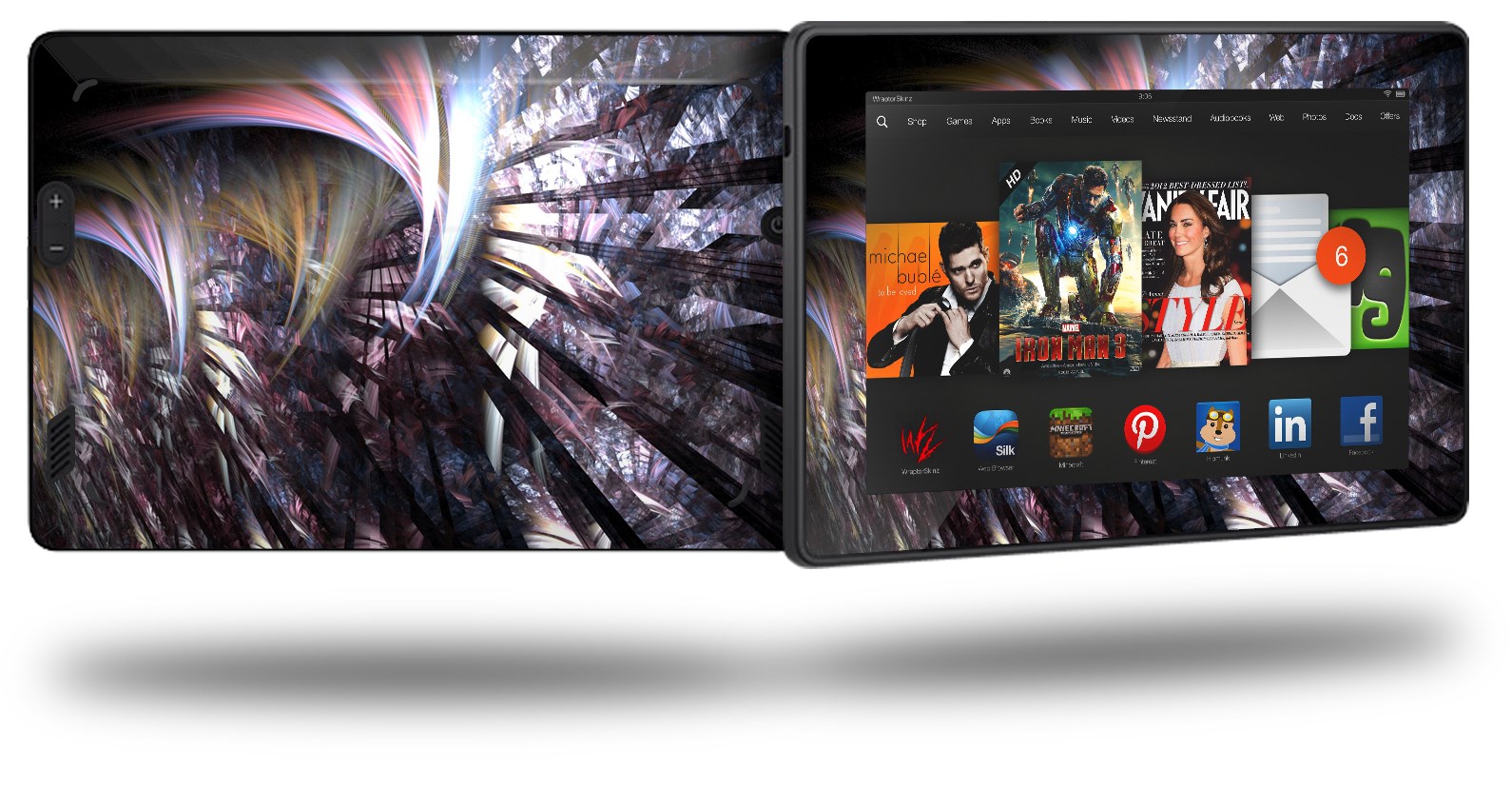 • Skin covers front and back of the Kindle.