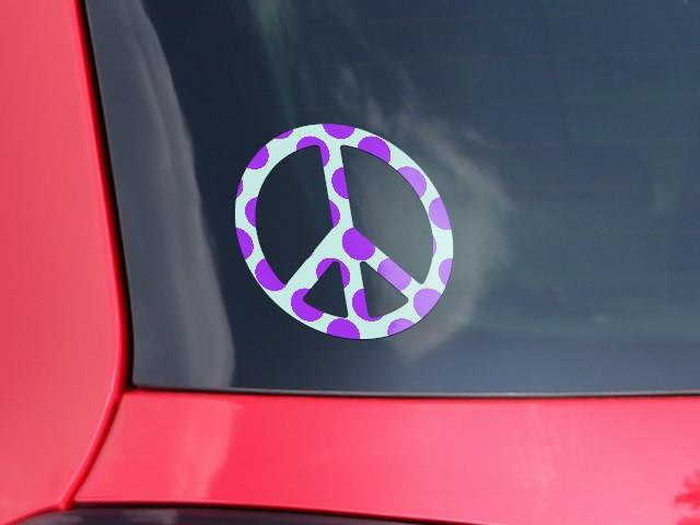 Kearas Polka Dots Purple And Blue - Peace Sign Car Window Decal 6 x 6 inches