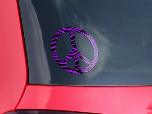 Purple Zebra - Peace Sign Car Window Decal 6 x 6 inches
