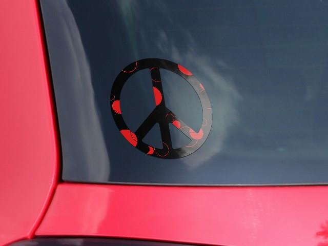 Lots of Dots Red on Black - Peace Sign Car Window Decal 6 x 6 inches
