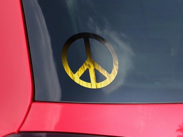 Fire Flames Yellow - Peace Sign Car Window Decal 6 x 6 inches