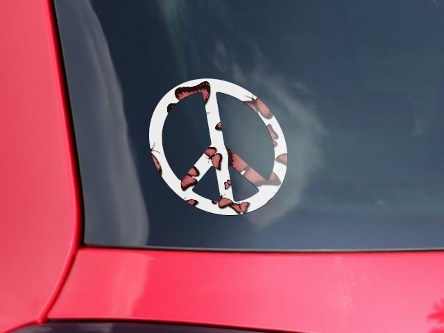 Butterflies Pink - Peace Sign Car Window Decal 6 x 6 inches