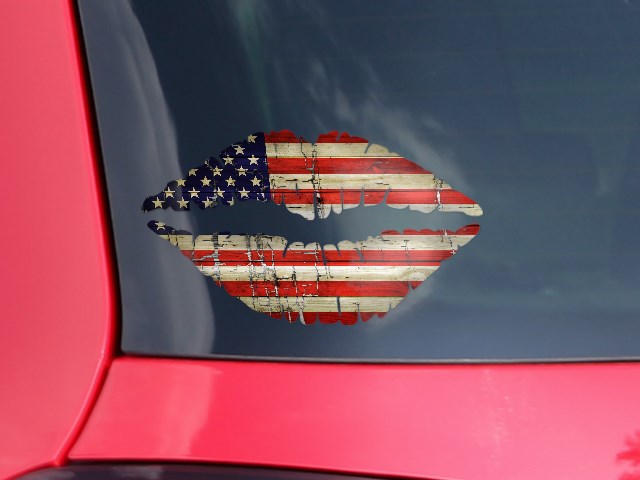 Lips Decal 9x5.5 Painted Faded and Cracked USA American Flag