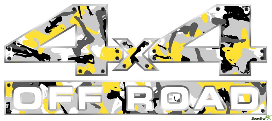 Sexy Girl Silhouette Camo Yellow - 4x4 Decal Bolted 13x5.5 (2 Decal Set)