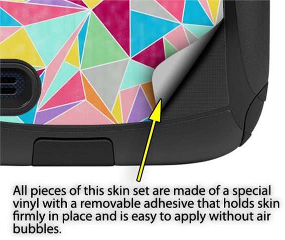 uSkins™ are self adhering vinyl decal style skins and are a great way to add a new look to your protective case. uSkins are a composite of two layers of commercial grade materials. The bottom layer is a soft, flexible vinyl with a special removable adhesive that is easily positioned, applied without air bubbles. Next we print the bottom layer with UV protected, fade resistant inks that deliver superb photo quality designs in vibrant colors. Finally we bond a professional grade laminate over the entire skin adding a glossy protective finish.