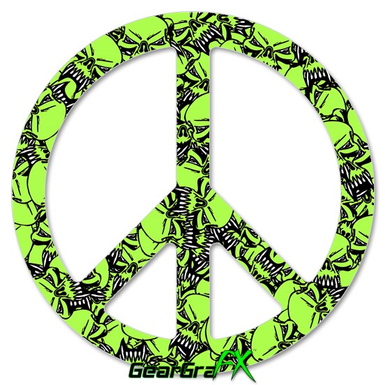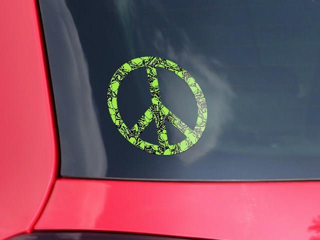 Scattered Skulls Neon Green - Peace Sign Car Window Decal 6 x 6 inches