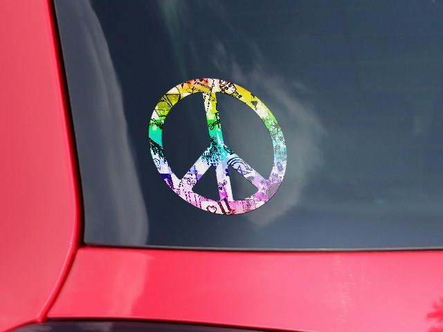 Scene Kid Sketches Rainbow - Peace Sign Car Window Decal 6 x 6 inches