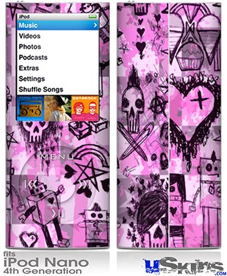 iPod Nano 4G Skin - Scene Kid Sketches Pink